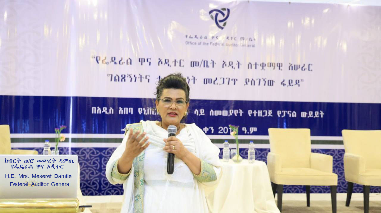 የፌዴራል ዋና ኦዲተር መ/ቤት በባለበጀት የመንግስት ተቋማት አሠራሮች ላይ የሚያካሂዳቸው ኦዲቶች ተጠያቂነትንና ግልጸኝነትን በማረጋገጥና ሙስናንና ብልሹ አሠራርን በመከላከል ረገድ ያመጡትን ፋይዳ ለመለየት በአዲስ አባባ ዩኒቨርሲቲ የጥናትና ምርምር ባለሙያዎች ያስጠናው ሳይንሳዊ ጥናት ውጤት ጥቅምት 8 ቀን 2018 ዓ.ም በአዲስ አበባ ከተማ በተካሄደው የፓናል ውይይት ቀርቦ ግምገማ ተደርጎበታል፡፡